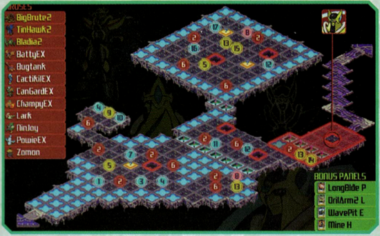 - LongSwrd: Performs battle. Liberates 2 panels. Panel ahead and the one above that.